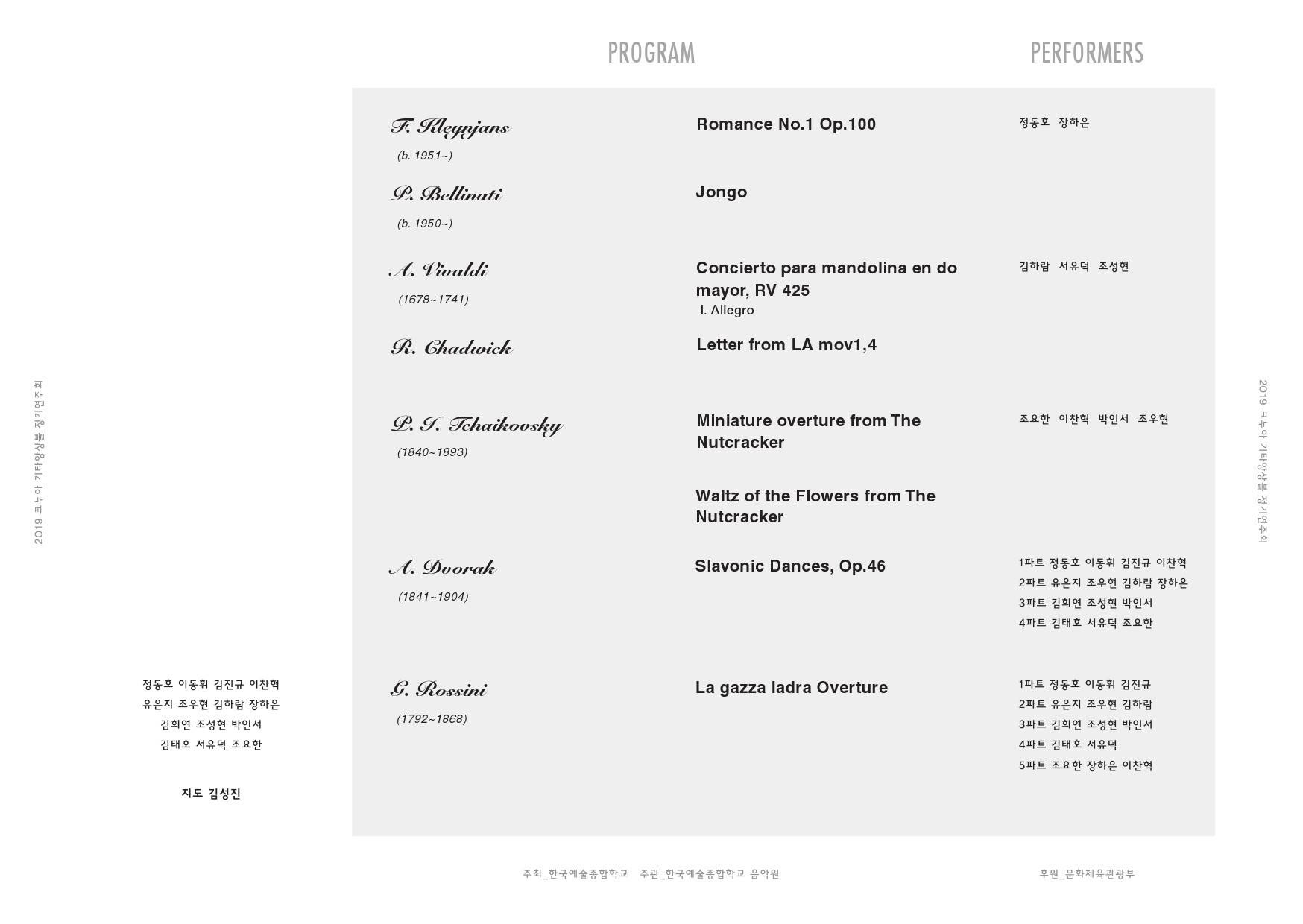| [2019년 6월 15일] 알함브라기타앙상블 클래스콘서트 - Musica de España y Latinoamerica (0) | 2019.06.11 |
