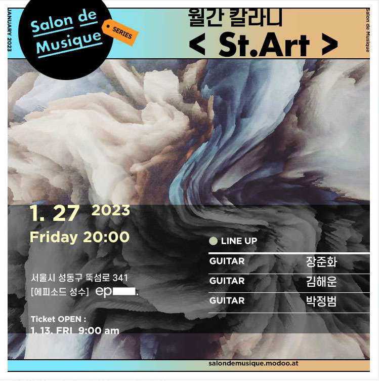 ℹ️예매 방법 : 프로필아래 링크에서 쌀롱드무지끄 in 성수 클릭, <월간 칼라니 - St.Art> 공연 선택