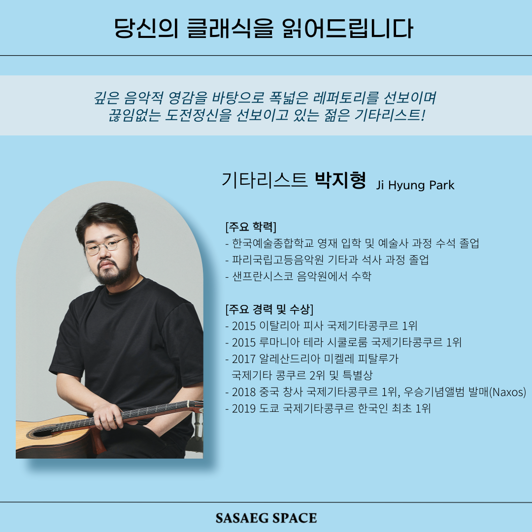 그외 다수의 권위있는 국제콩쿠르에서 우승을 거머쥔 박지형 기타리스트.
