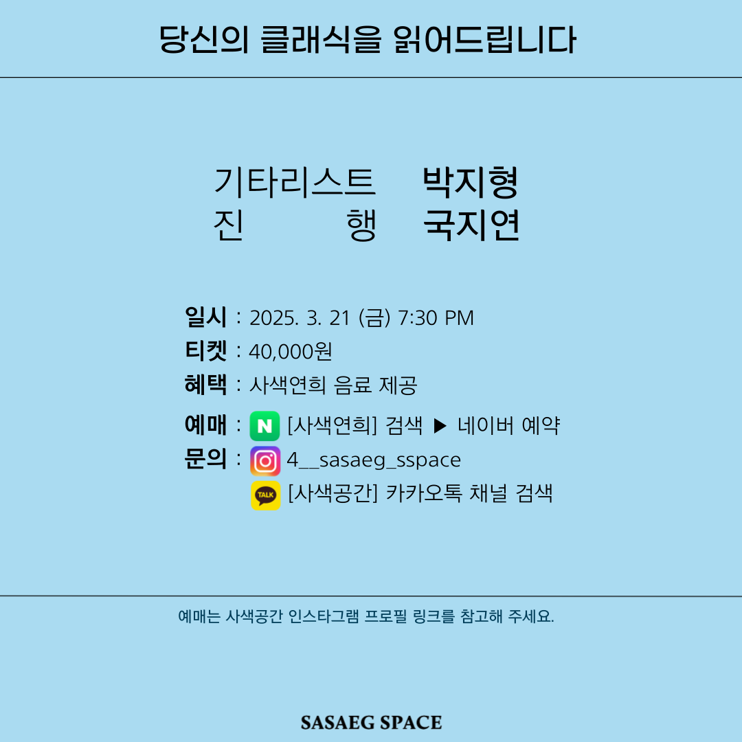 3/21(금) 기타리스트 박지형, 진행 국지연