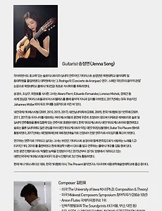 전체 글767 [2018년 8월 19일] 요하네스 뮐러 & 장하은 기타 듀오 콘서트 요하네스 뮐러 & 장하은 기타 듀오 콘서트일시 : 2018년 8월 19일 (일) 오후 5시장소 : 여의도 KBS아트홀티켓 : V석 50,000원 S석 30,000원문의 : 010-5534-3400예매 : 인터파크 www.interpark.com 2018. 8. 16. [2018년 8월 18일] 서유덕 기타 독주회 금호영아티스트콘서트 - 서유덕 기타 독주회 일시 : 2018년 8월 18일(토) 오후6시 장소 : 금호아트홀티켓 : 전석 10,000원문의 : 02-6303-1977예매 : interpark 프로그램 요한 제바스티안 바흐 류트를 위한 파르티타 E장조, BWV1006a 중(기타 연주) Johann Sebastian Bach Partita for Lute in E Major, BWV1006a(exceprt)(performed on Guitar) Prelude 마우로 줄리아니 기타를 위한 로시니아나 제2번, Op.120 Mauro Giuliani Rossiniana No.2 for Guitar, Op.120 줄리오 레곤디 서주와 카프리스, Op.23 Giulio Regondi Introduction et Ca.. 2018. 8. 16. [2018년 7월 22일] 송정연 클래식기타 독주회 송정연 클래식기타 독주회 일시 : 2018년 7월 22일(일) 7:30pm장소 : 금호아트홀티켓 : 전석 20,000원(학생50%할인)공연예매 : interpark 1544-1555문의 : 02)585-2934~6 (www.pro-art.co.kr) 2018. 7. 14. [2018년 7월 8일] 송정연 클래식기타 독주회 Romántico송정연 클래식기타 독주회Piano 김연주 Flute 김동진 일시 : 2018년 7월 8일(일) 5:00PM장소 : 대전예술의전당 앙상블홀티켓 : 전석 2만원(학생 50%할인)예매 : INTERPARK 1544-1555문의 : 1661-0461 2018. 7. 3. [2018년 7월8일] 바르셀로나 기타 트리오 & 댄스 스페인의 정열 플라멩코바로셀로나 기타 트리오 & 댄스일시 : 2018년 7월 8일(일) 5pm장소 : 롯데콘서트홀티켓 : R석 6만원 S석 5만원 A석 4만원문의 : 1661-1605 2018. 7. 3. [2018년 7월 7일] 바르셀로나 기타트리오&댄스 (울산) 바르셀로나 기타트리오&댄스 (울산)일시 : 2018년 7월 7일(토) pm7:00장소 : 울주문화예술회관티켓 : 25,000원예매 : www.uljuart.or.kr문의 : 052)229-9500 2018. 7. 3. 이전 1 ··· 8 9 10 11 12 13 14 ··· 128 다음