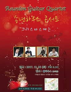 서울기타콰르텟 해피콘서트 일시 : 2017. 12. 12(화) 오후 7시장소 : 동탄복합문화셑터 반석아트홀 주최 : 서울기타콰르텟(www.sgq.co.kr)주관 : 디자인기타후원 : 한국문화예술위원회, 경기도, 경기도의회, 경기문화재단, 화성시, 화성시문화재단티켓 : R석 30,000원, S석 20,000원예매 : 고양문화재단, 인터파크 티켓문의 : 서울기타콰르텟(010-6224-7857) 서울기타콰르텟은 클래식 기타를 전공한 전문 연주자로 구성된 국내 최초의 기타 4중주단으로서 1999년 7월에 결성한 이래 현재까지 서울과 지방에서 매년 40여회 이상의 공연을 하고 있다. 기타를 위해 작곡된 곡들은 물론 비발디의 사계, 피아졸라의 사계, 영화 음악, 재즈, 가스펠 등 다양한 음악을 편곡하여 연주함으로써..