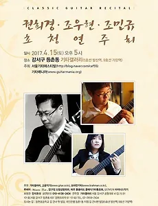 전체 글767 [2017년 5월 27일] 광성보 해변콘써트 광성보 해변콘써트 (강화도 불은면) 일시 : 2017년 5월 27일 (토) 오후 6시30분장소 : 인천 강화군 불은면 광성보 입장권 문의 : 010-4136-2434 프로그램 민들레듀오L'encourangement - Fernando sor op. 34 윤서준1.Nessun dorma 2.10월의 어느 멋진날에 어쿠스틱기타 이대헌1.먼지가되어(작곡,노래) 2.영산강(작곡,노래) 3.연가(작곡,노래) 4.아리아리엿차(작곡,노래) 등 rainbow band멤버김홍철 기타스트 리더 안나 첼리스트김유정 기타리스트빠리야 보컬 머나먼길 ,백만송이 장미percussive etude (김홍철작곡)하늘소풍 기타공연소식 http://guitarnews.net/ 악보다운 http:/guitarpro.tistory.com/ 2017. 5. 10. [2017 5월 21일] 기타리스트 박규희 / 이미솔: 솔로 & 듀오 일시 : 2017년 5월 21일 (일) 오후 7시장소 : JCC아트센터 콘서트홀티켓 : 전석 60,000 박규희 공식 페이스북페이지: https://www.facebook.com/kyuheepark.officialKO 예매: http://ticket.interpark.com/Ticket/Goods/GoodsInfo.asp?GoodsCode=17005318 기타공연소식 http://guitarnews.net/ 악보다운 http:/guitarpro.tistory.com/ 2017. 5. 10. [2017년 4월 21일] 그랑 기타 퀸텟과 함께하는 행복 콘서트 일시 : 2017년 4월 21일(금) 저녁7시장소 : 천주교 밀양성당 대성전티켓 : 전석무료초대 Guitar 김성진,전승원,김유진,김한나,홍소림 with Violin 김수연 기타공연소식 http://guitarnews.net/ 악보다운 http:/guitarpro.tistory.com/ 2017. 4. 19. [2017년 4월 30일] 세계 GUITAR계의 전설 로스 로메로스와 함께하는 코리안 챔버 오케스트라 정기연주회 코리안 챔버 오케스트라제156회 정기연주회세계 GUITAR계의 전설 로스 로메로스와 함께! 일시 : 2017년 4월 30일 (일) 오후5시장소 : 예술의전당 콘서트홀티켓 : R석 12만 , S석 9만 , A석 6만 , B석 3만예매 : 예술의 전당 02-580-1300 , 인터파크 1544-1555문의 : 02-592-5728 기타공연소식 http://guitarnews.net/ 악보다운 http:/guitarpro.tistory.com/ 2017. 4. 8. [2017년 4월 29일] 대전클래식기타사랑 카페 초청연주회 일시 : 2017년 4월 29일 (토) 6시장소 : 대전예술가의 집 누리홀티켓 : 10,000원예매문의 : 010-8696-1997공연장전화 : 042-480-1081 대전클래식기타사랑카페에서 2013년부터 대전지역 기타리스트를 초청하여 열고있는 연주회'NEUMA' 초청연주회를 이번해에도 4월을 시작으로 2회 기획하고 있습니다. 그 첫번째 초청연주회가 4월 29일, 대전예술가의 집에서 열립니다. 올해는 대전클래식기타사랑 카페에서 1년동안 활동을 후원하고 있는 클래식기타 콰르텟 '피아체레'를 중심으로 연주회를 기획합니다. '피아체레'는 대전지역에서 활동하시는 기타리스트 4인을 구성된 콰르텟팀으로 작년에 이어 올해에도저희 카페에서 활동지원을 하고 있습니다. 대전과 인근지역에 계신 분들의 많은 관심과 성원 부.. 2017. 4. 8. [2017년 4월 15일] 권희경.조우현.조민규 초청연주회 권희경 ,조우현 조민규 초청연주회일시 : 2017년 4월 15일 (토) 5시장소 : 서울 강서구 등촌동 기타갤러리(5호선 발산역,9호선 가양역) 안동에서 올라오시는 기타매니아 세가족을따스하게 맞이합시다......기타매니아분들 꼭 오셔서 같이해요... 주최 : 기타매니아, 서울기타페스티발후원 : 기타갤러리, 고운악기.연락처 : 010 - 4136 - 2434입장권 : 무료 Solo(조우현) 1. Villa lobos Prelude No.1 - Villa lobos2. Fantaisie Hongroise - J.K.Mertz3. BWV -1006- Prelude from lute suite 4 - J.S.Bach Trio(권희경,조우현,조민규) 1. Scherzino Mexicano - Manuel M. p.. 2017. 4. 8. 이전 1 ··· 18 19 20 21 22 23 24 ··· 128 다음