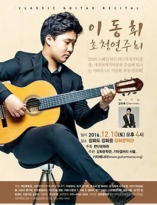 이동휘 초청연주회 2016년 빛나는 국제콩쿨 우승자인 이동휘님을 초청하여연주회를 엽니다. 뜨거운 열정과 능숙한 연주로청중을 압도하는 이 연주회에 많은 관심 부탁드립니다..... 일시 : 2016년 12월 10일 토요일, 4시장소 : 인천시 강화도 강화읍 강화문학관 주최 : 한단문화원주관 :강화문학관, 기타갤러리 서울, 기타매니아. www.guitarmania.org후원 :예민문화원, 고운악기. www.gitar.co.kr, 무애정사, 화가 강기욱, 온수리 맘 갤러리,윤작가의 사진수업,마리기타앙상블, 외포리 문카페, 한두뼘갤러리, 자연드림 생협,카페 남문로 7, 카페 드 갤러리, 빨간코네모, 가망불망서점, 청운서림,내가면 힐링센터,인문서당 김유자,초대권(무료) 문의 : 010 - 4136 - 2434 프로..