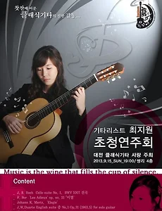 전체 글768 [2013년 10월 25일]재즈..와인에 빠지다 52nd - 박윤우 트리오 재즈..와인에 빠지다 52nd - 박윤우 트리오 일시 2013년 10월 25일 (금) 오후8시 장소 해운대문화회관 해운홀 R석(1층) 35,000원 S석(2층) 25,000원 예매처 인터파크,YES24,옥션티켓,해운대문화회관,무대공감 홈페이지 문의 051-623-0678 www.mudae.,kr 2013. 10. 5. [2013년 10월 20일] 폴리포니기타듀오 <가을밤의 세레나데> -해운대문화회관 폴리포니기타듀오 정기연주회 2013년 10월 20일 저녁 7시 해운대문화회관 대공연장(해운홀) 일반 만원 (초중고 5천원) 문의 :010-5198-0074 후원 :부산광역시,부산문화재단,한국문화예술위원회 정성들여 공연을 준비하고 있습니다. 회원분들의 따뜻한 관심과 성원 많이 부탁드립니다. 고맙습니다. 폴리포니기타듀오 서승완,김경태 드림. 2013. 10. 5. [2013년 10월6일] 코리아기타오케스트라 15회 정기연주회 재15회 코리아기타오케스트라 정기연주회 일시:2013. 10., 6(일) 오후6시 장소:인천종합문화예술회관 소공연장 문의:코리아기타 오케스트라(010-4729-2090) http://cafe.daum.net/icgeicge 입장권: 만원(엔티켓 www.enticket.com Tel. 1588-2341) 2013. 10. 5. [2013년 9월 28일] 화정박물관 정기 연주회 (연주자 장길성 독주) 화정박물관 정기음악연주자 장길성 독주 일시: 2013년 9월 28일 [토] 오후 5시장소 : 화정박물관입장료 : 3000원 》PROGRAM 1. Fantasia on Themes from La Traviata - F. Tarrega 2. Partita No.2 in D minor BWV 1004 中 Chaconne - J. S. Bach 3. Romance - 스페인 민요 4. The Four Seasons in Buenos Aires - Primavera Porteño - Verano Porteño - Otoño Porteño - Invierno Porteño ---- A. Piazzolla - arr. Sergio Assad * 상기 프로그램은 연주자의 사정에 따라 변경이 될 수 있습니다. 》연주자소.. 2013. 9. 10. [2013년 9월 15일] Astro Guitar Quartet 연주회 Astro Guitar Quartet 연주회 일시:2013년 9월 15일 일요일 오후6시장소:북서울 꿈의 숲 아트센터입장권:전석 1만원 2013. 9. 10. [2013년 9월 15일] 미모의 기타리스트 최지원님의 작은 연주회 기타리스트 최지원 초청연주회일시:2013년 9월 15일 SUN 19:00장소:전 중구 대흥동 쌍리 카페 4층대전에 클래식기타 동호회 "대전 클래식기타 사랑" 모임에서 대전에서 활동중이신 프로기타리스트 최지원님을 초대하여 작은 연주회를 가지게 되었습니다아마추어의 주최로 작은 연주회를 열다보니 약간의 입장료겸 후원금을 받습니다. 장소는 대전 중구 대흥동 쌍리 카페 4층입니다 규모를 작게 해서 연주자 바로 앞에서 듣는 규모 입니다 관람인원 40명 정도.. 최대 50명까지 입니다자세한 내용은 http://cafe.naver.com/djclassicguitar (대전 클래식기타 사랑 모임) 카페에 공지로 떠있습니다. 많은 관심 바랍니다 ^^ 2013. 9. 10. 이전 1 ··· 70 71 72 73 74 75 76 ··· 128 다음
