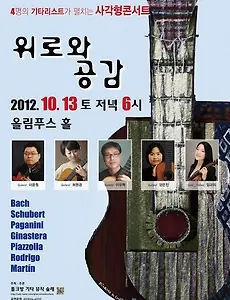 전체 글768 [2012년 10월 14일]데이비트 탄넨바움(David Tanenbaum) 마스터 클래스 이번 2012 대전국제기타페스티벌을 기념하여, 세계적인 클래식기타 연주자이며 저명한 클래식기타 교육자인 데이비드 탄넨바움(David Tanenbaum)을 초청하여 마스터클래스를 하고자 합니다. 일시: 2012.10.14(일) 10:00-16:00 장소: 대전시립미술관 전시실 강사: David Tanenbaum (미국) 인원: 선착순 6명 참가비:15만원 문의: 010-3910-0100 (조상구) 2012. 10. 4. [2012년 10월 11~14일] 2012 대전국제 기타 페스티벌 & 국제 콩쿠르 『2012대전국제기타페스티벌』에 여러분을 초대합니다. 대전국제기타페스티벌은 대전광역시 및 문화체육관광부의 공식 지원을 받아, 국제콩쿠르와 국내외 유명 기타리스트 공연 및 수제기타 제작전 시회를 개최하는 국제적인 음악페스티벌입니다. 지역의 축제를 넘어 한 국을 대표하는 국제적인 음악축제로, 세계적인 기타축제로 자리매김 되고 있으며, 세계 기타계의 주목 속에 한국의 기타문화가 세계 속에서 함께 발전하도록 노력하고 있습니다. 전 세계 기타인 및 애호가 여러분의 적극적인 관심과 참여를 바랍니다. I 총괄개요 ○ 일 정 : 2012년 10월 11일(목) ~ 14일(일) / 총 4일 ○ 장 소 : 대전문화예술의전당(아트홀, 앙상블홀, 야외원형극장) 대전시립미술관(강당, 전시실) 평송청소년문화센터(소극징, 전시실) .. 2012. 10. 4. [2012년 10월 13일] - 4명의 기타리스트들이 펼치는 사각형콘서트 '위로와 공감' 4명(허원경, 이윤정, 이우혁, 양은진)의 기타리스트들이 펼치는 사각형콘서트 음악이야기 '위로와 공감' 그 첫번째 이야기 일시 : 2012년 10월 13일 (토) 저녁 6시 장소 : 올림푸스 홀 티켓 : 전석 20.000원 예매 : Interpark Ticket 1544-1555 공연문의 : 02-924-6232 한국에서 활발한 활동을 펼치는 4명의 기타리스트들이 펼치는 각기 다른 음악의 이야기.‘위로와 공감’ 각기 다른 음악의 인생을 살고 있는 4명의 연주자들이 만나 교감을 이루고 그 교감이라는 교차점에서 4개의 면이 어우러진 사각형이라는 형태가 생겨난다. 모든 사람들은 각각 자신만의 인생의 한 페이지들을 가지고 있다. 그런 각각의 인생의 이야기들은 자기 자신에게 뿐만 아니라 다른 이들에게도 위로와 공.. 2012. 10. 4. [2012년 10월 28일] 예림기타트리오 창단 자선 연주회 창단 기념 자선 연주회를 기획하였습니다. 좋은 일에 뜻을 같이하시는 분들의 많은 후원과 격려 부탁드립니다. 본 공연의 티켓 판매 수익금은 전액 나사로 청소년의 집에 기부됩니다. 예림기타트리오 창단 자선 연주회 일시: 2012년 10월 28일 (일) 오후 4시 장소: 코스모스 홀 (코스모스 악기사 8층) 서울시 서초구 서초동 1461-9 티켓: 일반 1만원 / 학생 5000원 2012. 10. 4. [2012년 10월 27일] 필로스기타콰르텟 초청연주회(강화도 문예회관) 필로스기타콰르텟 초청연주회 ( 하곡문화예술 2012년 가을 시리즈 3) 일시: 2012년 10월 27일 토요일 저녁 5시 장소: 강화도 문예회관 소강당 입장권: 1만원 문의: 010-4136-2434 주최: 강화뉴스신문, 하곡학연구원 주관: 하곡문화예술 가을저녁 강화도를 더욱 아름답게 물들여줄 가족연주단을 초대합니다. 기타와 플륫등으로 쇼팽과 남미리듬 그리고 열정으로 가득할 무대에 여러분을 초청합니다. 꼭 오셔서 추억으로 남을 음악회를 담아가셔요. 프로그램 green sleeves - 리코더와 기타 - Anomymous waltz 64-2 - F. Chopin prelude(Bwv.1006) - J.S.Bach Hanuman - Rodrigo Viking man - Rodrigo Sevilla - I.A.. 2012. 9. 26. [2012년 10월 18일] grial duo 강화도 초청연주회 그리알 듀오 초청연주회 일시: 2012년 10월 18일 목요일 7시 장소: 강화도 문예회관 입장권 : 1만원 문의: 010-4136-2434 프로그램 concert program of classical guitar duo GriAl in Korea 1st parte: 1. S.L.Weiss – vivace from sonate for two lutes A-Dur 2. F. Gragnani – “Duo Concertante” 3. M. Castelnuovo-Tedesco – two prelude&fuge: d-moll and E-Dur 4. Aleksey’s solo piece ……. 5. E. Granados – “Valses Poeticos” 2nd parte: 1. G. Belyaev – suite .. 2012. 9. 25. 이전 1 ··· 81 82 83 84 85 86 87 ··· 128 다음