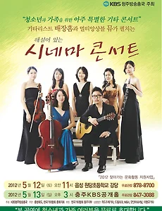 [2012년 5월 13일] 시네마 콘서트 "청소년과 가족을 위한 아주 특별한 기타 콘서트"기타리스트 배자흠과 멀티앙상블 뮤가 펼치는해설이 있는시네마 콘서트 일시:2012년 5월 13일 (일) 오후 3시장소:충주KBS공개홀티켓:무료관람문의:043-847-3088 ProgramJazz Suite No.2 "Walz2"CavatinaConcierto Aranjuez 중 2악장"Reminiscence" for Piano and String Quartet마법의 성Mamma Mia 모음곡... 2012. 5. 4.