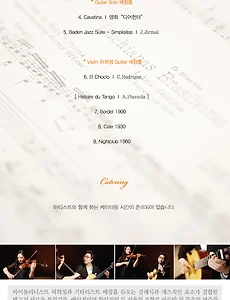 기타연주회730 [2012년 1월 14일] 화정박물관 신년음악회 Classic Guitar 장길성 독주회 2012년 1월 화정박물관 신년음악회 - Classic Guitarist 장길성 연주회 일시 : 2012년 1월 14일 (토) 오후5시 장소 : 화정박물관 화정아트홀 티켓 : 일반 : 3,000 (당일 관람권 소지자 무료) ※ 자리는 예약자를 우선으로 배정되며 예약은 입금을 원칙으로 합니다. 문의 : 한빛문화재단-화정박물관 서울시 종로구 평창동 273-1 Tel. 02-2075-0121~0128 Fax. 02-2075-0130 * 연주자 소개 * Classic Guitar_ 장길성 1995년 제 16회 한국기타협회 콩클 초등부 1위 2009년 제13회 전국음악콩쿨 대학부 2위 2009년 장길성 기타 독주회 2010년 서울바로크합주단 제11회 전국 음악콩클 클래식기타 대학 및 일반부 2위 2010년 제 1.. 2012. 1. 13. [2012년 1월 14일] K l a n g F a r b e 갤러리콘서트2 Gt김우재 Vla김재윤 K l a n g F a r b e 갤러리콘서트 2 성남기타페스티벌 기획26 출연 : 기타리스트 김 우 재 비올리스트 : 김 재 윤 2012. 1. 14 (Sat) 5 pm 장소 : 빛뜰갤러리 주소 : 경기도 성남시 분당구 구미동226-5 티켓 : 일반 2만원 학생 1만원 (현장판매) 공연문의 : 010-5466-9620 2012. 1. 13. [2012년 1월 14일] 박 지형 기타독주회 2012년 1월 14일 토요일 오후 8시 영산 양재홀(지하철 3호선 양재역 부근) 전석 무료 초대 참석해 주시어 자리를 빛내주시기 바랍니다.. 전석 무료초대 오시는길 : http://www.youngsanhall.com/introduction/int_4.asp?subnum=1 PROGRAM Joaquin Rodrigo (1901 ~ 1999) Junto al Generalife – 헤네랄리페 근처에서 Sonata Giocosa I. Allegro Moderato II. Andante III. Allegro Johann Sebastian Bach (1675 ~ 1750) Chaconne from BWV 1004 --------- intermission ---------- Sylvius Leopold Wei.. 2012. 1. 13. [2012년 1월 18일] 기타리스트 배장흠과 허트리오의 바이올리니스트 허희정의 탱고 음악의 세계 공연 명: 메종드콘서트 (배장흠.허희정 듀오) 일시: 2012년 1월 18일 수요일 오후7시 공연장소: 청담동 유아트스페이스 갤러리 (하단 지도를 참조해주세요^^) 전석:30,000원 티켓예매 및 공연 문의: 쿠오클래식 02-564-6092 2012. 1. 5. 이전 1 ··· 133 134 135 136 137 138 139 ··· 183 다음