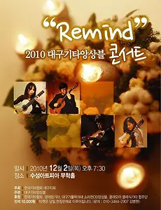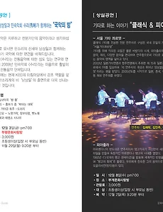 기타연주회730 [2010년 12월 8일] 서울기타콰르텟-국악의 밤 부평사랑방연주회 프로그램 G.F.Telemann F. Kleynjans(1951~ ) Les 4 points cardinaux I. Nord II. Sud III. Est IV. Ouest A. Piazzolla 천사의 밀롱가 (Milonga del angel) A. Piazzolla 신기한 푸가 (Fuga y Misterio) A. Piazzolla 망각 (Oblivion) A. Piazzolla 부에노스아이레스의 사계 (Quattro Stagioni) 2. Verdant portend 4. Inevident portend A. Piazzolla 리베르탱고 (Libertango) (Arr김 인주) cinema story 1. The Mission (1986) 미션 중 Gabriel's Oboe 2. T.. 2010. 12. 5. [2010년 12월 4일,14일] 4인의기타리스트-사색전-No.4 사.색.전. No. 4 네 번째 전람회 - 4인의 기타리스트- "기타 연주로 세상과의 소통을 시작한 2007년 첫 만남 이래 다양한 방식을 통해 매년 지속적으로 대중들과의 교감을 이어왔던 가 이번에는 [어울림]이라는 부제 아래 함께하는 청중들에게 차가운 겨울 클래식기타만이 가질 수 있는 이전에 없던 따뜻한 감성을 선물한다." 2010년 12월 4일 토요일 5시 성남아트센터 앙상블시어터 2010년 12월 14일 화요일 7시 30분 고양어울림누리 별모래극장 주최 주관 | 제이아트 후원 | 한국기타연주가협회 나승수피부비뇨기과 공연문의 | 010 3265 2814 예매처 | 전석20,000원 인터파크1544-1555 www.interpark.co.kr 고양문화재단 www.artgy.or.kr Program 박우.. 2010. 11. 22. [2010년 12월 2일] 대구기타앙상블 Remind 콘서트 Trio 이봉주 염해석 김병현 S. L. Weiss Ciacona G. Faure Dolly, Op.56 No.1 Berceuse No.3 Le jardin de dolly No.4 Ketty-Valse Solo 염해석 M. M. Ponce Sonata Romantica (Hommage a F. Schubert) Allegro Moderato – Andante espressivo – Allegretto Vivo R. Dyens Tuhu from Hommage a H. Villa-Lobos Trio 이봉주 염해석 김병현 F. Schubert Sonata in a minor (Arpeggione) 1 mvt. Allegro Moderato Intermission Duo 이봉주 김병현 F. Kleynjans .. 2010. 11. 22. [2010년 12월 1일] 2010 서울 아르페지오 기타 연주회 건국대병원 불우 환우를 위한 자선음악회 2010 서울아르페지오 기타연주회 주최: 서울아르페지오 클래식기타 동호회 후원: 건국대학교병원 장소: 건국대학교 대강당 일시: 2010년 12월 1일(수) 오후 7시 [초대의 글] 안녕하세요? 서울 아르페지오 클래식 기타동호회 회장 심찬섭입니다. 학창시절 음악에 대한 열정 하나로 클래식 기타 합주단을 창단하여 음악활동을 하다가 사회에 나와서는 뜻을 같이하는 기타 합주단 후배들과 함께 동호회 모임을 만들어 정기적인 모임과 클래식 기타 연주 활동을 하고 있습니다. 기타는 멜로디와 리듬과 화음을 표현할 수 있는 몇 안 되는 완전한 악기로 음색 표현을 아주 다양하게 할 수 있어 베에토벤이 기타를‘작은 오케스트라’로 비유 했고, 마스네는 “기타는 현악기 중에서 가장 완전한 .. 2010. 11. 22. 이전 1 ··· 162 163 164 165 166 167 168 ··· 183 다음