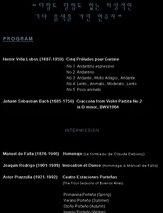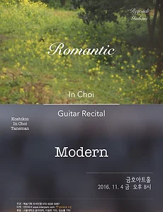 기타개인레슨62 [2016년 11월 4일] 최인 기타리사이틀 최인 기타리사이틀 일시 : 2016년 11월 4일 (금) 오후8시장소 : 금호아트홀티켓 : VIP석 5만원,R석 3만원,S석 2만원문의 : 070-4220-3287 매년 새로운 레퍼토리를 대중에 소개하며 독보적 연주 및 작곡 활동을 펼쳐오고 있는 클래식 기타리스트 최인의 2016년 독주회가 오는 11월4일(금) 저녁8시 금호아트홀 에서 열립니다. 이번 독회에서 최인은 Romantic and Modern을 주제로 낭만시대의 대표적 비루투오조인레곤디, 줄리아니의 곡들과 함께 자주 연주되지 않아 대중이 접하기 어려웠던 현대곡들을 선보입니다. 또한 2014년 이래로 꾸준히 작곡활동을 해온 최인이 이번에는 작고한 세계적 건축가 이타미 준(유동룡)의 작품으로부터 영감을 얻은‘石, 風, 水’와 연습곡 ‘공간’을 초연.. 2016. 11. 3. [2016년 11월 6일] 창단18주년 로스아미고스 기타합주단 정기연주회 창단18주년 로스아미고스 기타합주단 정기연주회스페인 음악 여행 일시 : 2016년 11월 6일 (일) pm 5:00장소 : 성남아트센타 콘서트홀티켓 : 전석초대문자예매 : 010-3357-4528, 010-5247-6233다음카페 : http://cafe.daum.net/LosAmigos 지휘 : 박종대초청연주 : 기타리스트 황민웅 기타공연소식 http://guitarnews.net/ 2016. 11. 2. [2016년 11월 2일/6일] MoA 기타 앙상블 정기연주회 MoA 기타 앙상블 정기연주회 2016. 11. 2 (수) 오후 7:30 영산아트홀2016. 11. 6 (일) 오후 5:00 인천아트플랫폼 주최 : 모아기타앙상블 (http://cafe.naver.com/pge)후원 : 아트실비아, 이주용기타주관 : 디자인기타티켓 : R석 50,000원 / S석 30,000원예매 : 인터파크 티켓 (1544-1555, ticket.interpark.com)문의 : 디자인기타 (070-4038-9693), 모아기타합주단 (010-6224-7857) P/R/O/F/I/L/E MoA 기타 앙상블은 전문 클래식기타 연주가들로 이루어진 기타합주단으로 2013년 창단 이후 이래 현재까지 서울과 지방에서 10여회의 공연을 진행 하고 있으며 기타를 위해 작곡된 곡들은 물론 비제의 카르.. 2016. 10. 18. [2016년 10월 14일] 배광수 기타 리사이틀 BAE KWANGSU GUITAR RECITAL배 광 수 기 타 리 사 이 틀 일시 : 2016년 10월 14일(금) / 오후 7시 30분장소 : RECORDIA ARTHALL (BANPO, SEOUL)티켓 : 전석 20,000원 / 문의 : 티켓 예매 및 문의처 : ksubae@naver.com 02.582.8715 기타공연소식 http://guitarnews.net/ 2016. 10. 7. 이전 1 ··· 7 8 9 10 11 12 13 ··· 16 다음